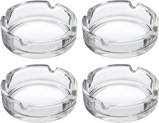 4x Glazen asbak basic. Diameter: ca. 10 cm. Materiaal: glas. U ontvangt 4 stuks asbakken.