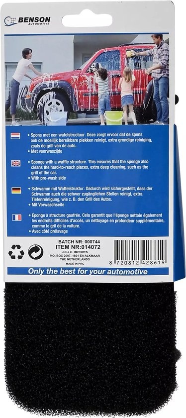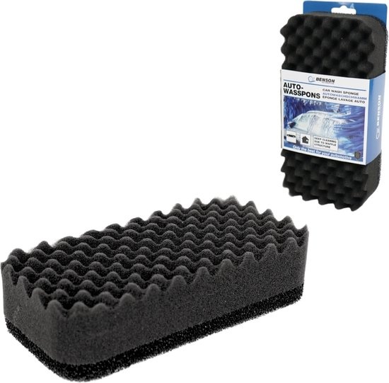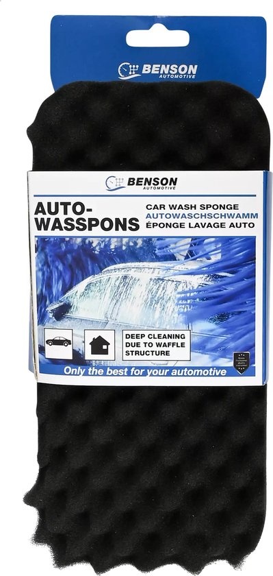 Zoekwoorden: Benson autospons, auto schoonmaak spons, wafelstructuur spons, grote autospons, dubbelzijdige spons, harde en zachte spons, autopoets spons, auto wassen spons, grondige autowas, spons voor autolak.
