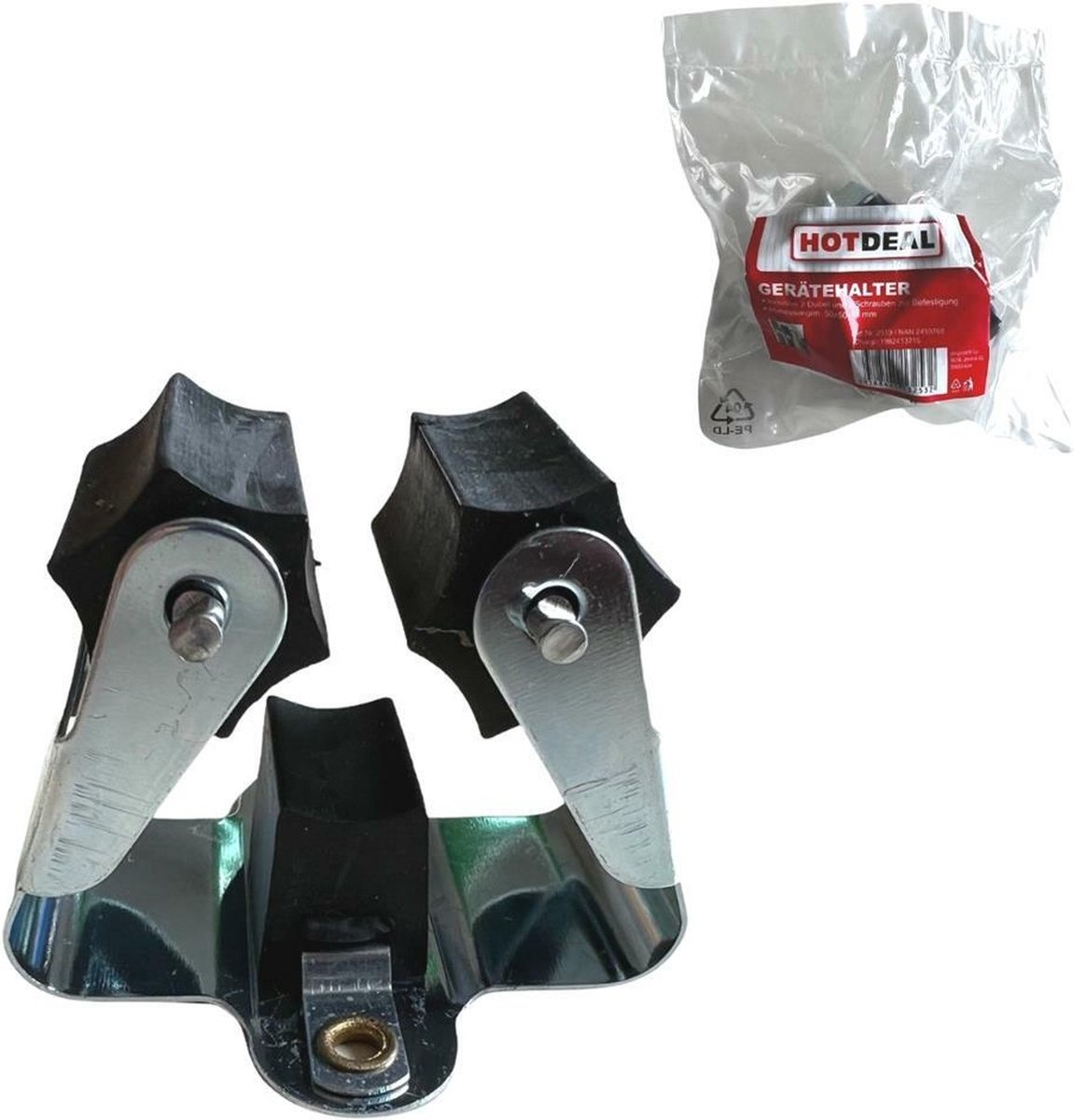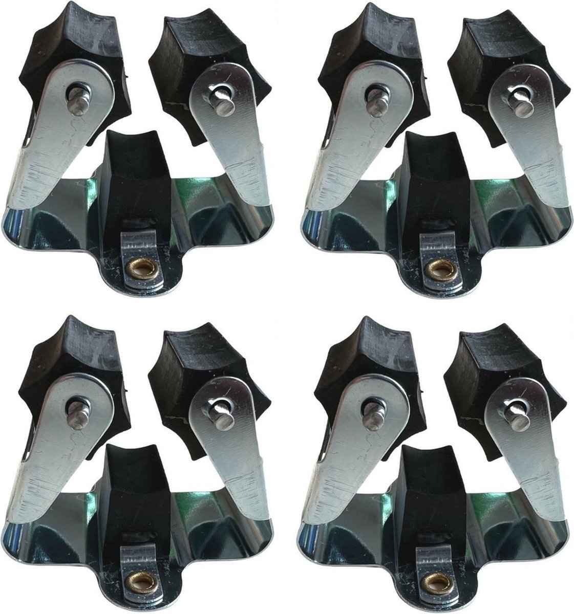 Set van 4 degelijke ophangklemmen inlcusief schroeven en pluggen.