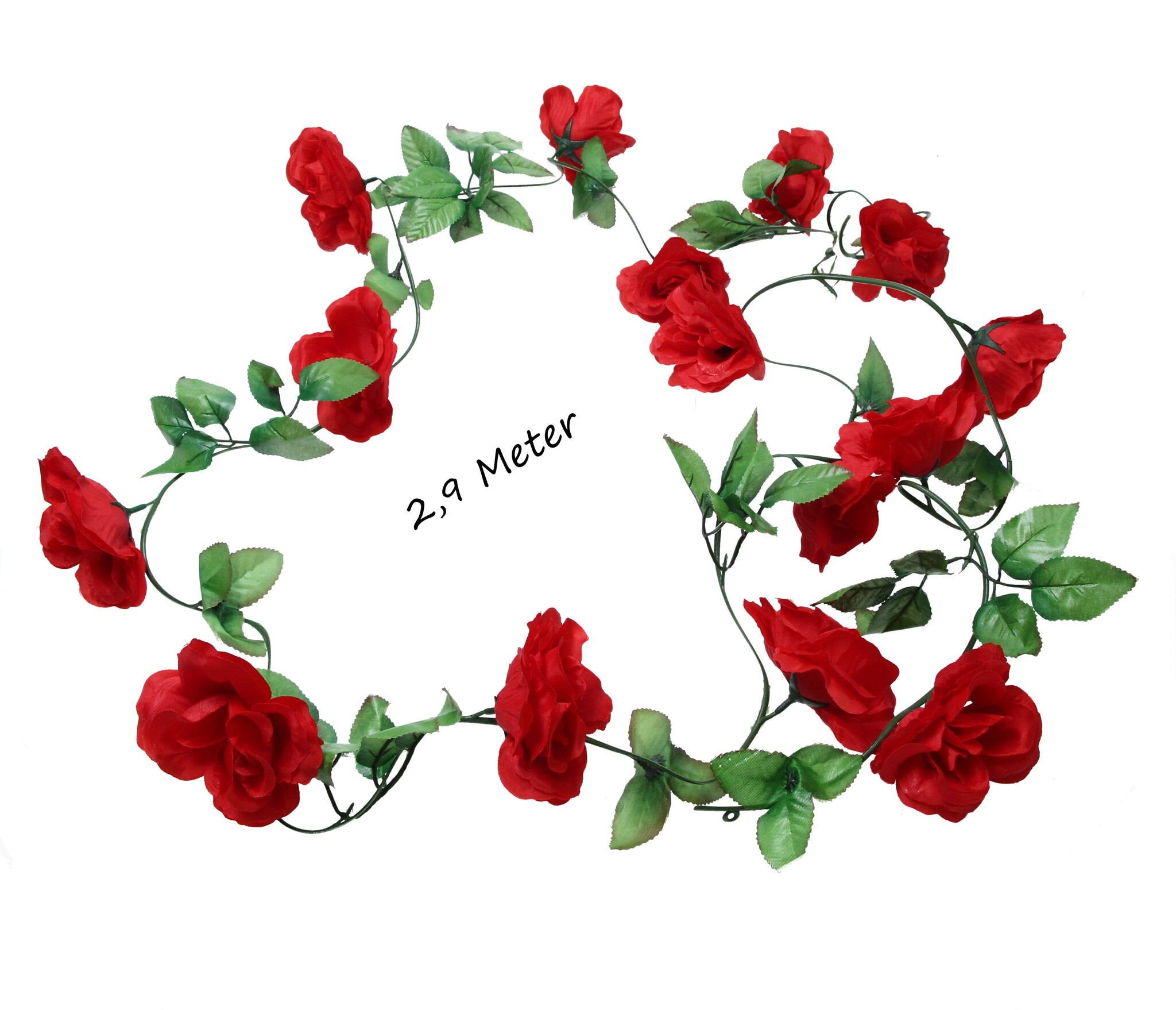 Bloemen slinger Fiets - Bloemenstreng voor Fietsmand of Stuur - Kunstbloemen - 290 CM Rood