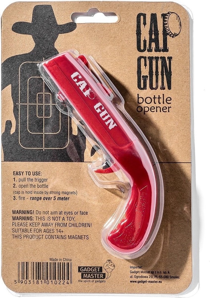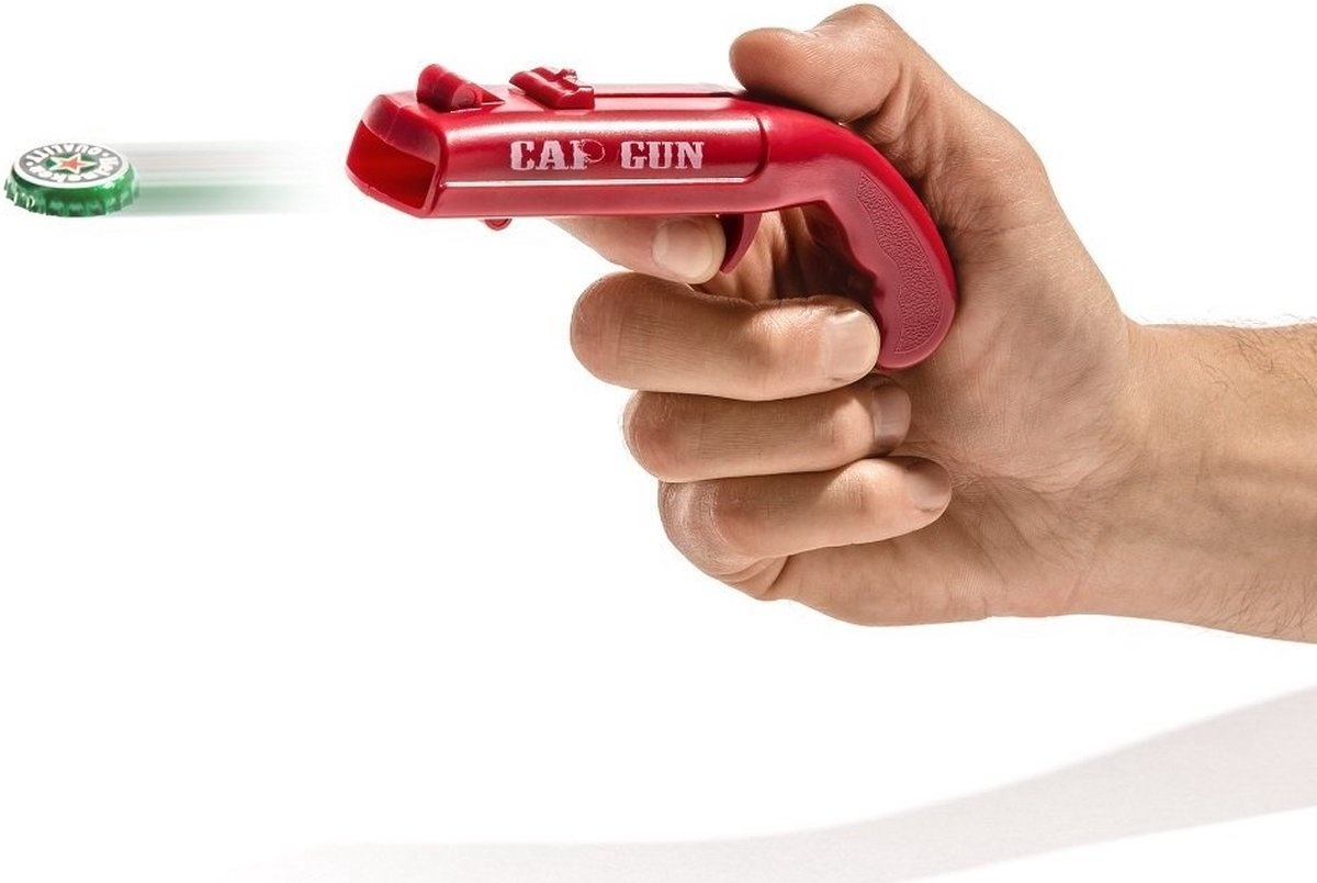 Ben je opzoek naar een origineel cadeau,of wil je gewoon je flessen bier op een coole manier openmaken ? Dan is deze Cap Gun - Bierdop schieter - Flesopener de ideaale flesopener voor jou.
