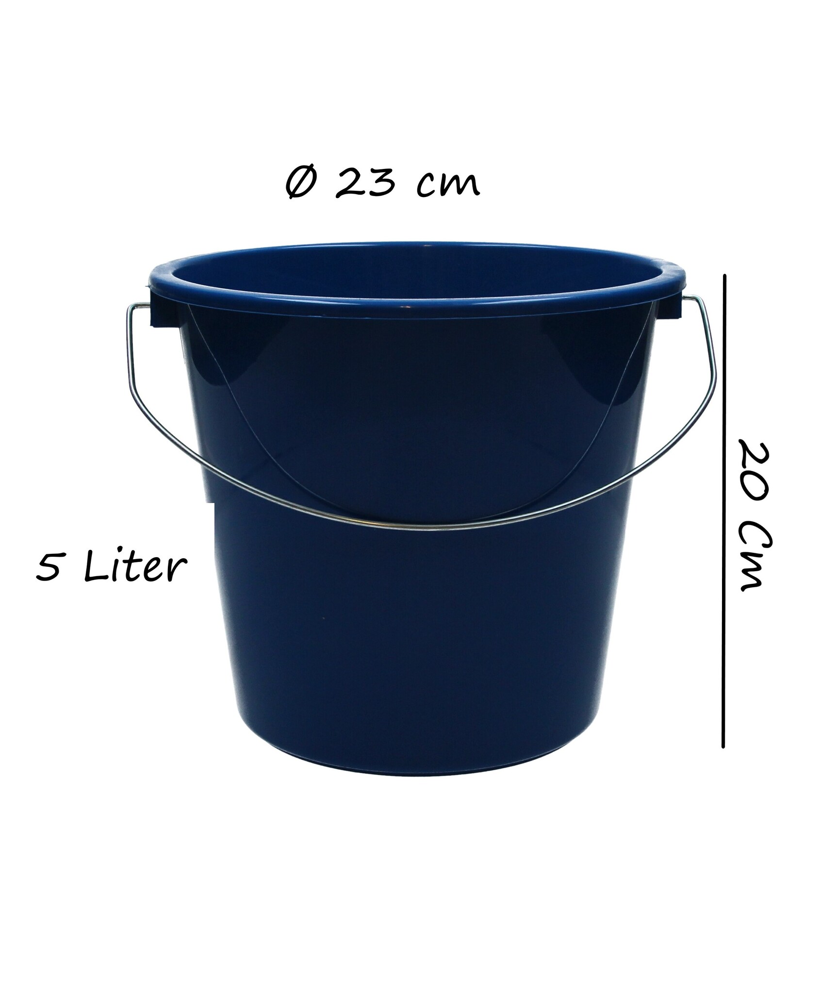 Huishoudemmer in het blauw, rood & zwart met een inhoud van 5 liter. Met handige draagbeugel en literschaal.