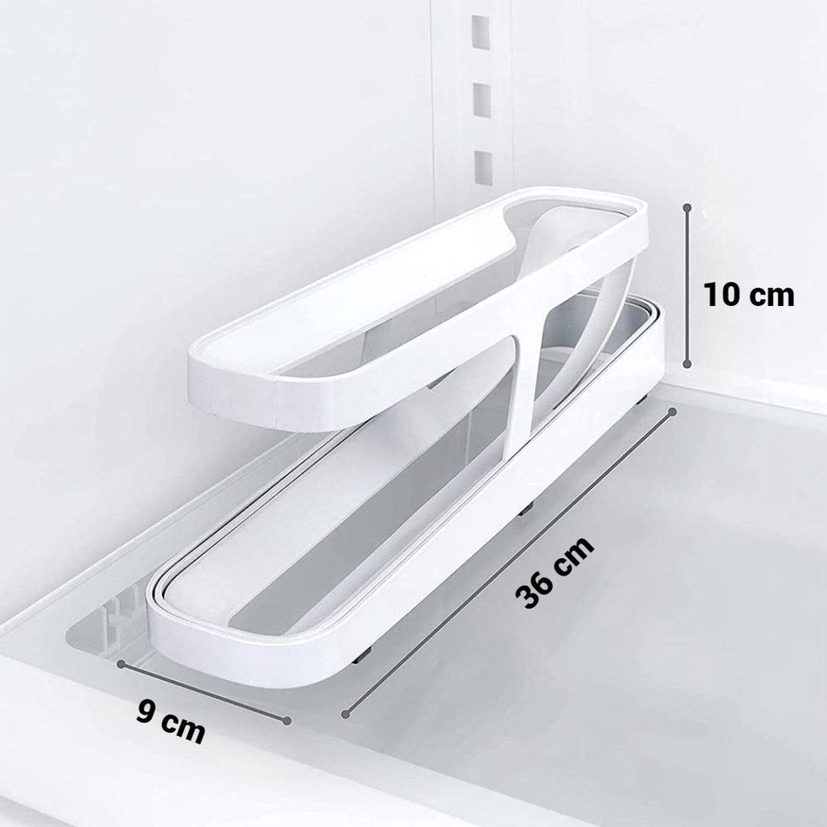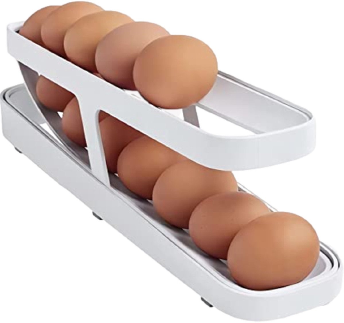 Dit automatisch rollende eierrek is ontworpen om uw eieren netjes en georganiseerd in uw koelkast te houden. Met zijn tweeledig rollende eierdispenser kunt u gemakkelijk 12-14 eieren bewaren in een klein ruimtebesparende eierhouder. Geen montage nodig en het is gemaakt van hoogwaardig BPA-vrij plastic. Laat de zwaartekracht zijn werk doen en gun je eitjes een ritje op de egg-coaster!
