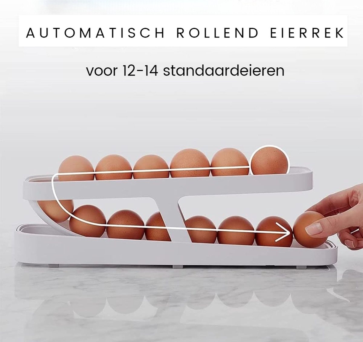Rollende Eierhouder voor Koelkast - Eierdoos -Eierhouder- Eierrek - Koelkast Organizer - voor 12-14 eieren