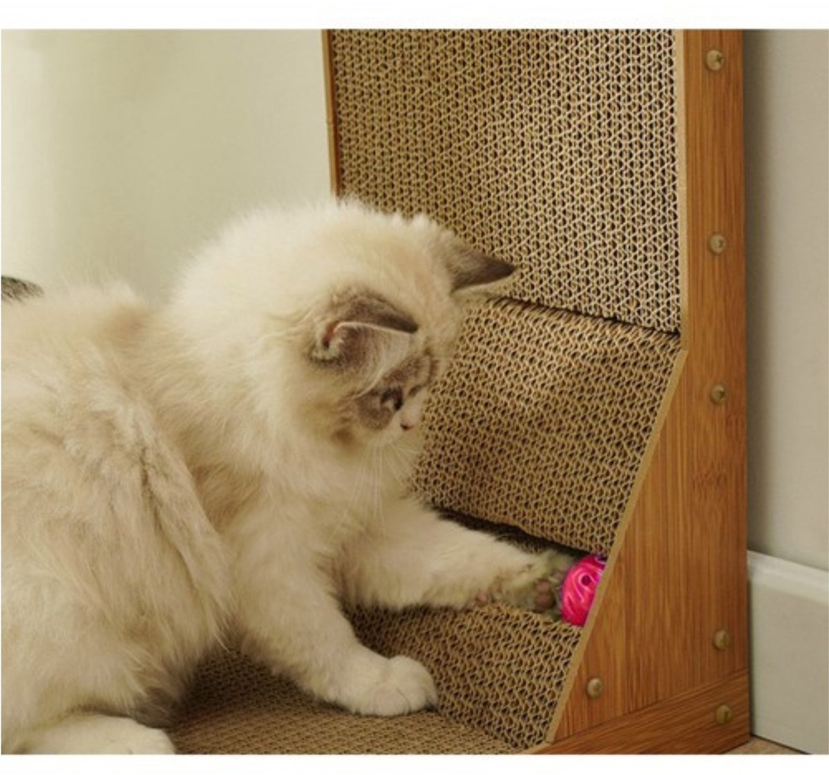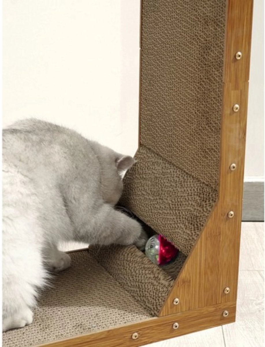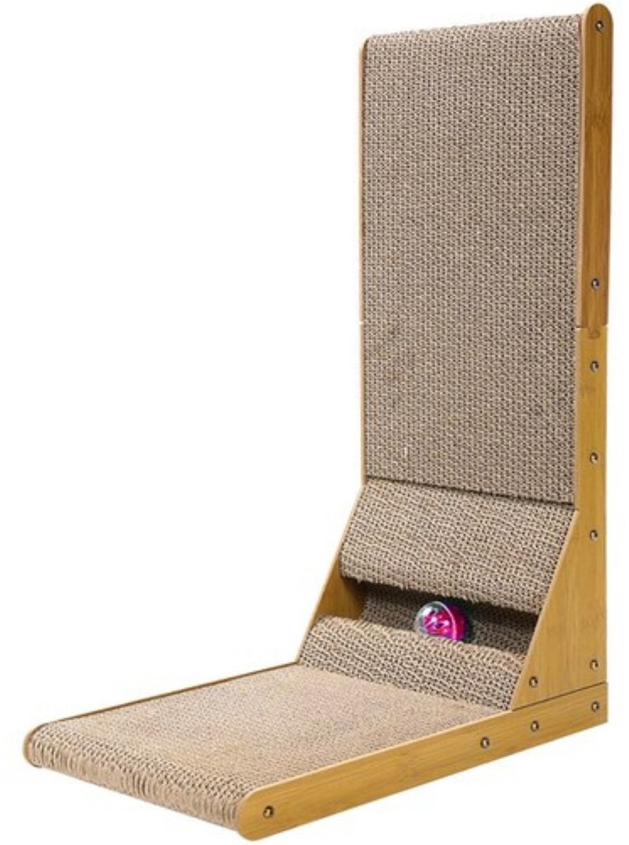 Deze hoogwaardige krabpaal is perfect om te voldoen aan de instinctieve behoefte van je kat om te krabben en zijn nagels te scherpen. Gemaakt van duurzaam karton met een stevige MDF-frame, biedt de krabmat een robuust oppervlak waar je kat graag op zal krabben, waardoor je meubels en deuren beschermd blijven tegen krassen. De combinatie van horizontale en verticale oppervlakken moedigt natuurlijk krabgedrag aan, waardoor deze krabber een onmisbare toevoeging aan je huis is.
