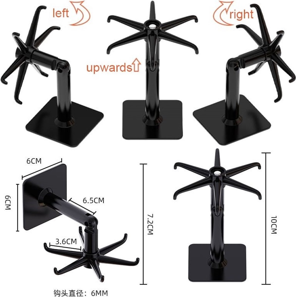 Keuken organizer - Zelfklevend wandrek met 6 haakjes - Ophangrek haak -Zwart - Set van 2