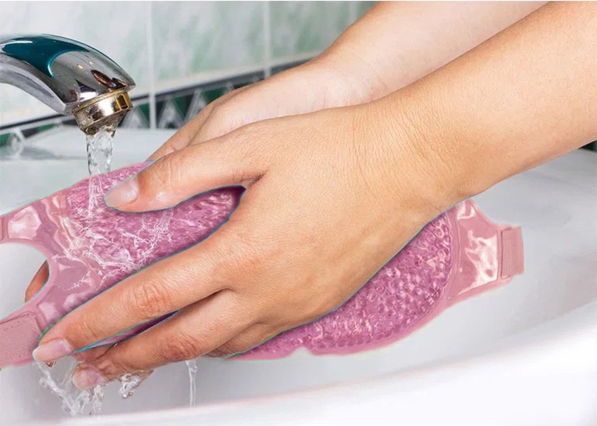 10 -15 seconden (met de golflengte ingesteld op ongeveer 600W). Het masker is dubbelzijdig. Aan de ene kant is het gevuld met gelkralen, die beter geleidend zijn voor warmte of kou. Aan de andere kant zit een heel prettig aanvoelend, fluweelachtig materiaal dat een te groot gevoel van kou of hitte verlicht.