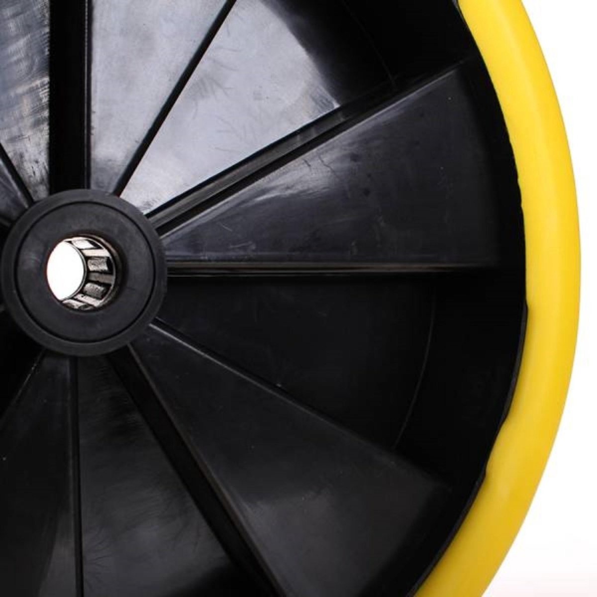 Massief PU kruiwagenwiel op kunststof velg.