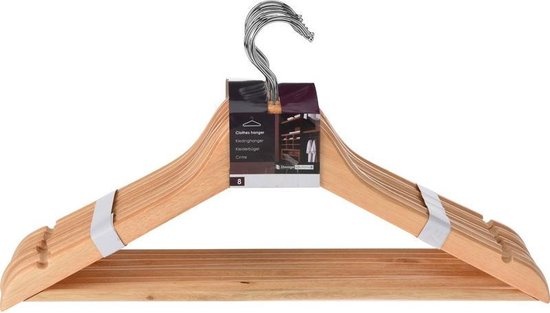 Deze luxe houten kledinghangers met broeklat en inkepingen zijn verpakt per 16 stuks en hebben een afmeting van ca. 44 cm.