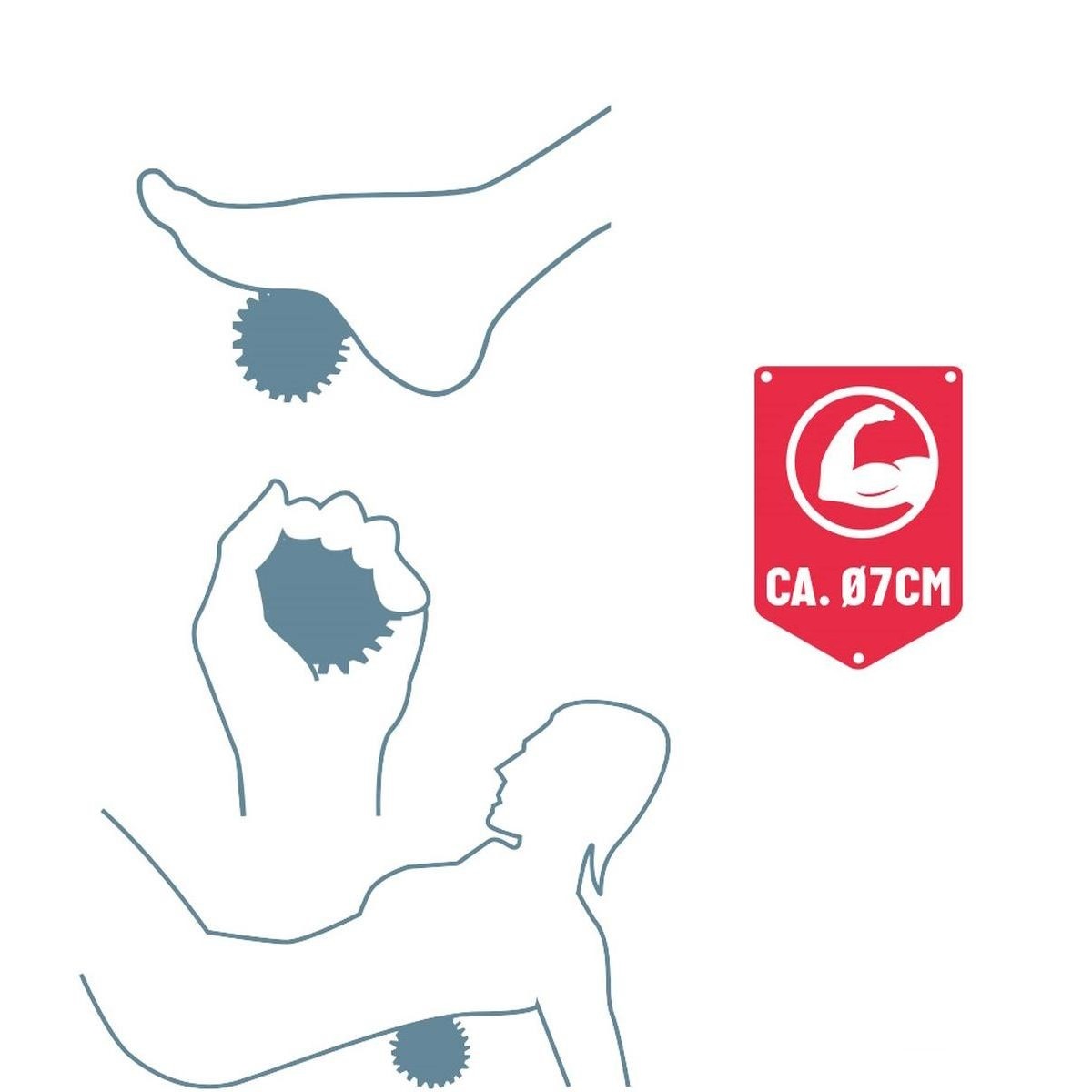 Deze massagebal zorgt voor een deep tissue massage in de voeten. De spiky harde buiten laag biedt een stimulerend effect en verhoogt de bloedcirculatie. Een uitstekend hulpmiddel tegen pijnlijke voeten. De kunststofbal is perfect voor vingeroefeningen, greep verbeteringen, en massage van handen en voeten. De massagebal stimuleert de tastzin in de handen en verbetert de flexibiliteit en kracht in de vingers en tenen. De bal is bedekt met afgeronde stekels die ervoor zorgen dat de zenuwen in de handen en voeten worden geprikkeld en de spieren worden gestimuleerd.