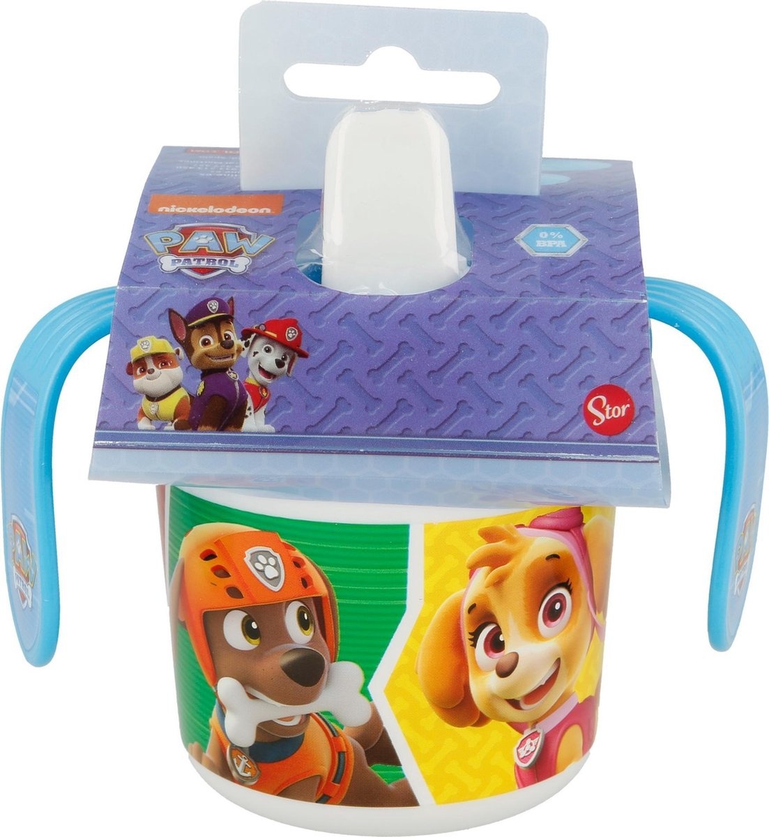 Paw Patrol oefenbeker ideaal voor jonge kinderen om te leren drinken uit een normale beker. Morsbestendig, flip-open drinktuit. Kinderen zullen dol zijn op deze versierde beker met hun favoriete helden uit Paw Patrol.