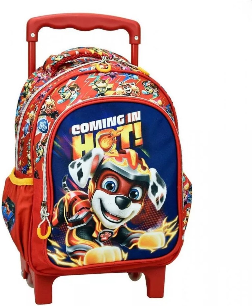 Praktisch en Speels Ontwerp: Deze Paw Patrol trolley rugtas is ideaal voor jonge fans van de populaire animatieserie. De tas is voorzien van een vrolijke afbeelding van Marshall met zijn kenmerkende brandweerpet, wat het een aantrekkelijke keuze maakt voor kinderen. De tas is uitgevoerd in een heldere rode kleur, afgewerkt met opvallende gele details.