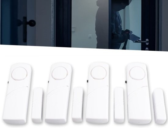 Premium 4x Draadloos Inbraakalarm Set met Magnetische Sensoren – 4 Stuks – Wit – 90 dB | Deur en Raam Beveiliging | Inbraakalarmsysteem| Woningbeveiliging | Waarschuwings Alarm Tegen Inbrekers en Indringers