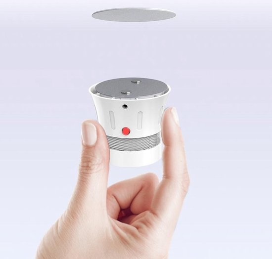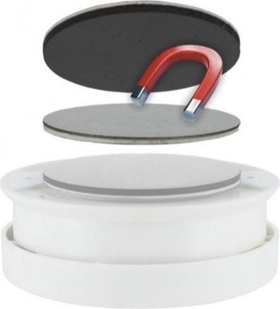 - Plak één magneet op het plafond en de andere op de rookmelder