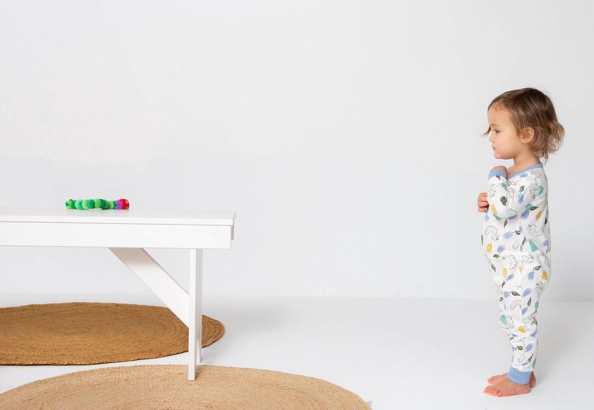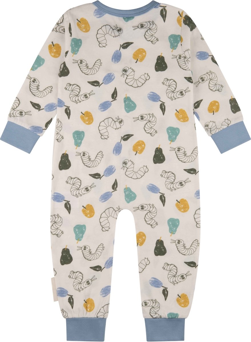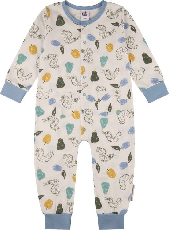 Dit leuke Rupsje Nooitgenoeg boxpakje heeft lange mouwen en pijpjes en een drukknoop voorsluiting. Een leuke en vrolijke allover print in mooie kleuren. Wie kent niet het beroemde Rupsje dat altijd honger heeft en geschreven door Eric Carle en waarvan je nu ook dit leuke boxpakje kunt krijgen. Het boxpakje is gemaakt van een zachte katoenen stof en elastische blauwe boordjes en biesjes voor een goede pasvorm.