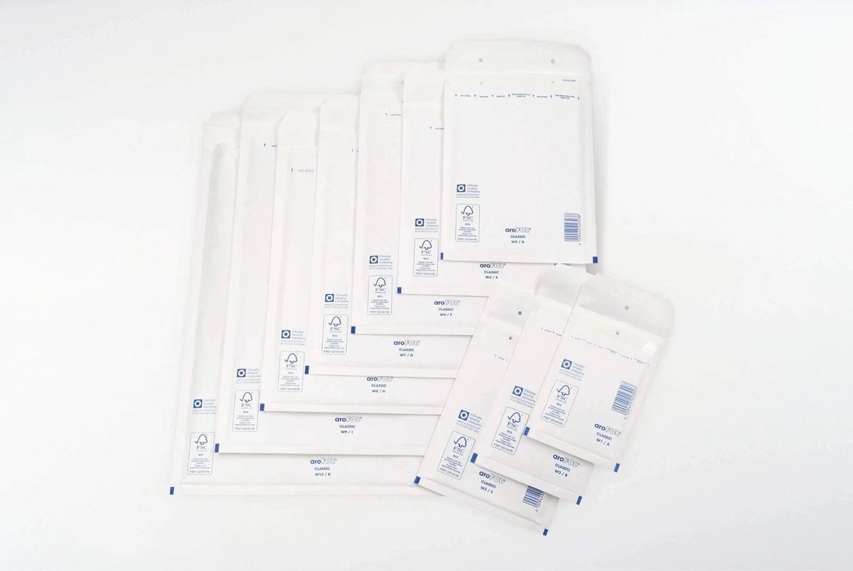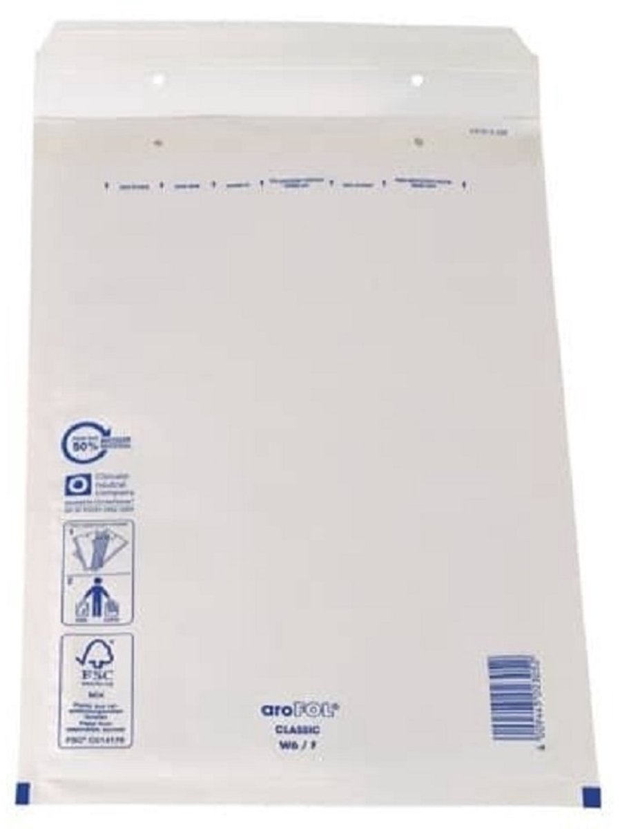 Wit gerecyclede luchtkussenenveloppen - Formaat 6/f - 22 x 34 Cm - 6 stuks